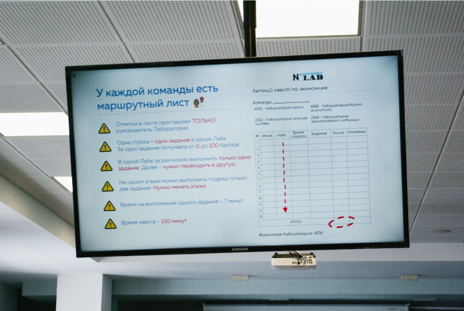 Участники объединились в 14 команд, каждая из которых за три часа прошла через 13 станций в четырех тематических «экономических лабораториях». На каждой станции команды решали задачи разного уровня сложности и зарабатывали баллы. Максимум за каждую станцию можно было получить 100 очков, а в конце определилась сильнейшая команда